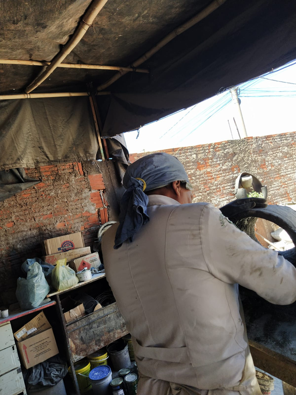 Preparamos os vasos,são de plástico picado fibra de vidro e areia e cimento leves e e ressistente.